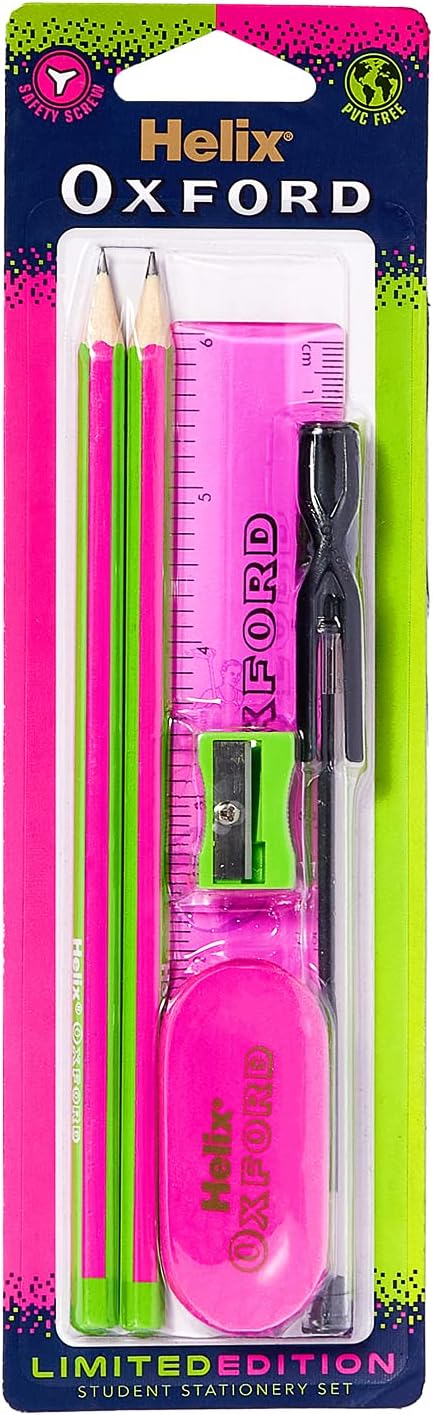 The Helix Oxford Clash Student Set offers a complete selection of everyday stationery essentials in bold, clashing blue and pink tones. Designed for durability and comfort, each component reflects Oxford’s renowned quality and attention to detail. Perfect for students of all ages, this compact set is ideal for school, college, or exam use.