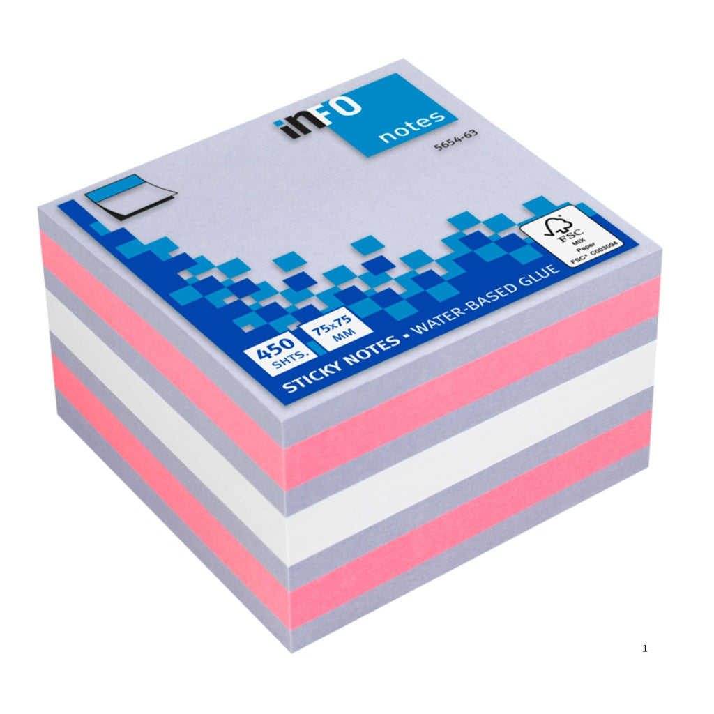 Bring clarity and style to your daily notes with the inFO Notes Brilliant Mix Cube. Crafted from premium paper, this cube features a bright mix of violet, pink, and white sheets ideal for color-coded reminders, creative planning, and efficient organization. The water-based, repositionable adhesive ensures secure sticking and easy removal without damaging surfaces, making it perfect for any workspace.