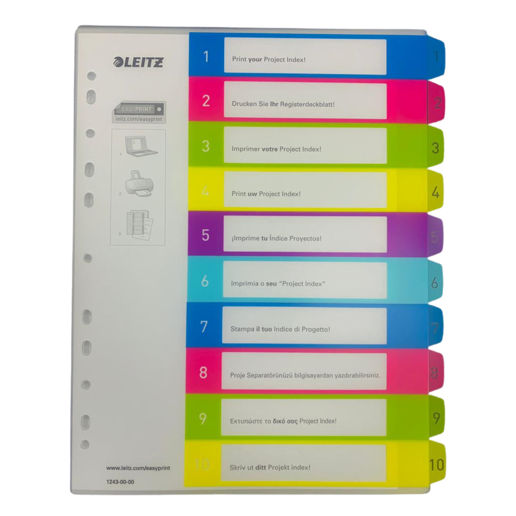 Add bold colour and efficient structure to your filing with the Leitz WOW PP Printed Index. Designed for everyday organisation, this A4 index divider features vibrant, colour-coded tabs numbered from 1 to 12 for fast referencing and clear document separation. Made from durable polypropylene, it delivers long-lasting performance, smooth handling, and full compatibility with standard ring binders, while supporting EasyPrint for customised tab labels.