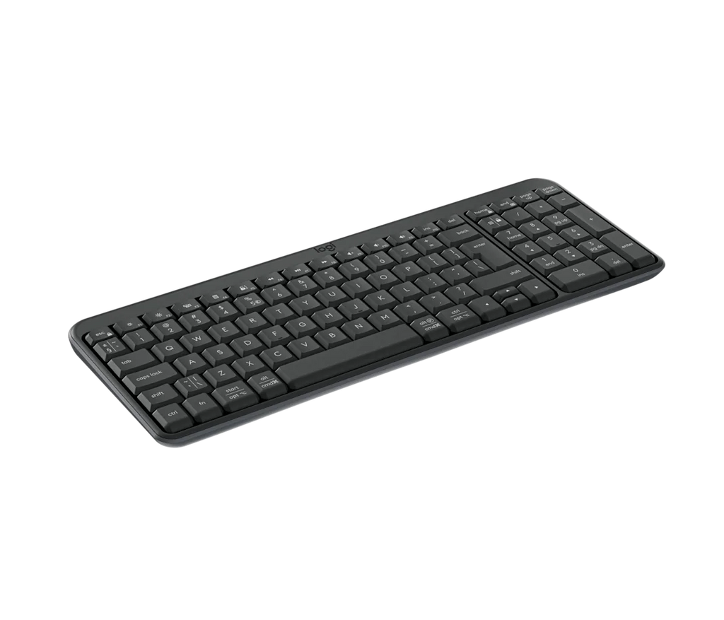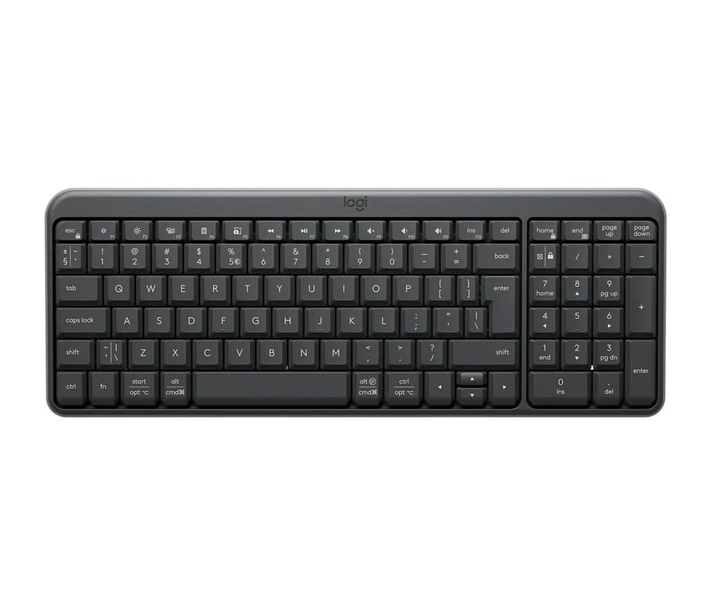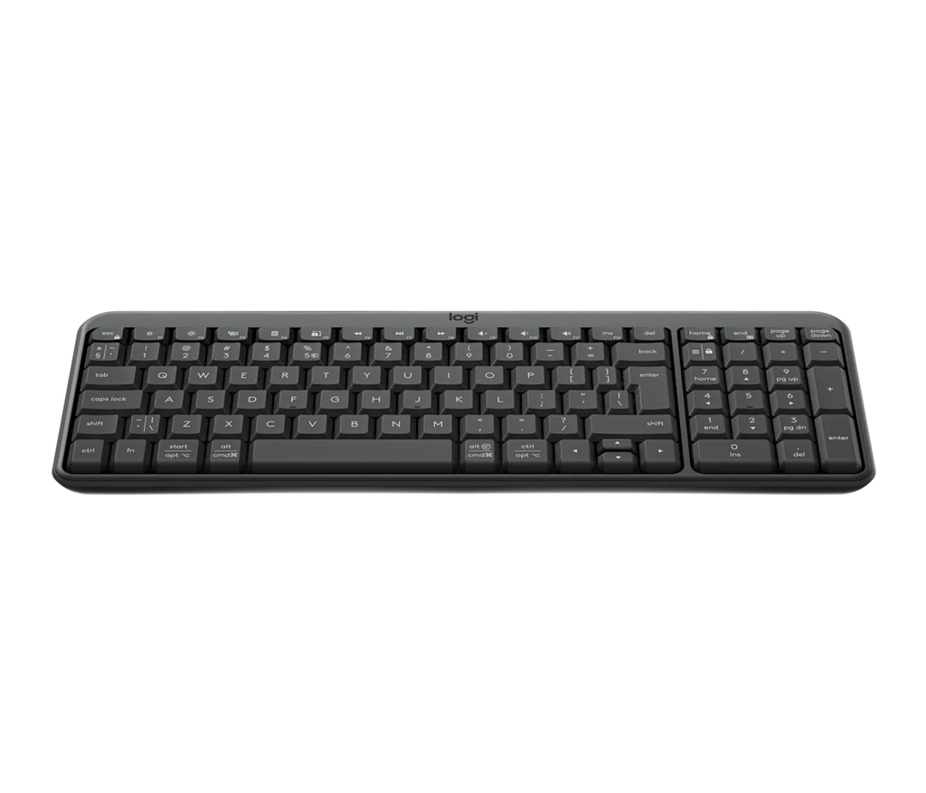 The Logitech K250 is a simple, compact, and reliable Bluetooth® wireless keyboard designed for easy typing and long-lasting performance. Its space-saving layout includes a full number pad and tilt legs for ergonomic comfort. Built to last with plastic parts containing at least 64% recycled materials, the K250 combines sustainability with everyday functionality. Perfect for multitasking across multiple devices, it delivers smooth connectivity and a comfortable typing experience at home or on the go.