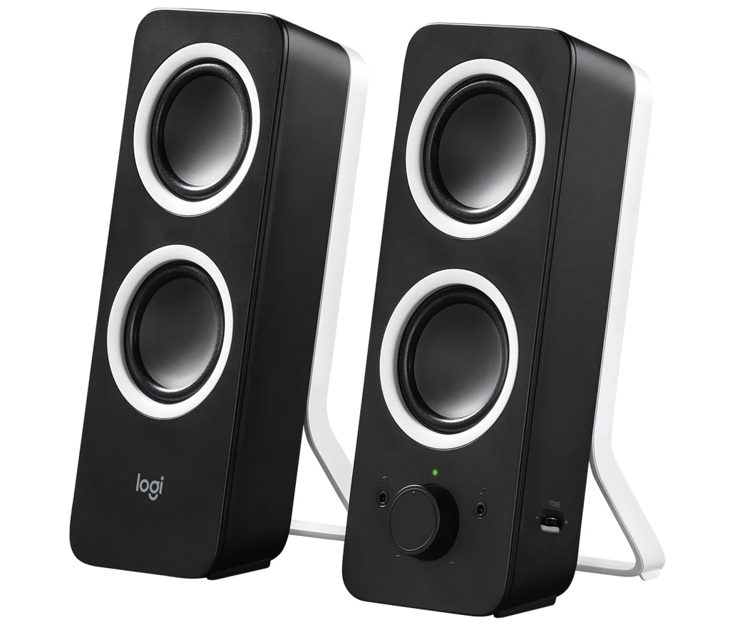 The Logitech Z200 Stereo Speakers deliver rich, balanced sound with 10W peak power and easy-to-access controls. With dual 3.5 mm inputs, a headphone jack, and tone adjustment, they’re versatile speakers for music, movies, and everyday listening.