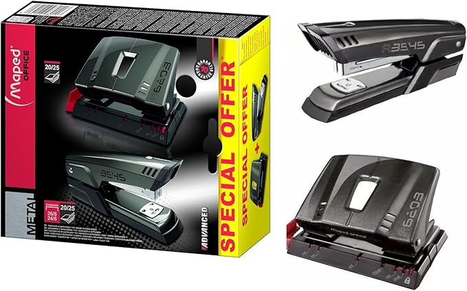 Built for busy desks, this metal stapler and 2-hole punch pair delivers smooth, reliable performance with a modern, durable design. The stapler handles everyday documents cleanly, while the punch provides accurate, consistent holes with an adjustable paper stop for neat filing.