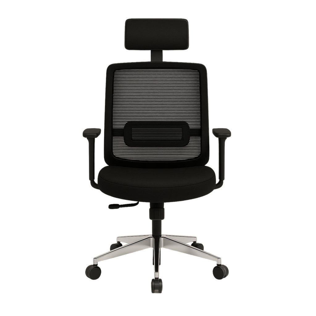 The New Malice Executive Mesh Chair delivers a perfect balance of sophistication and comfort. Designed with a breathable striped mesh backrest, cushioned black seat, and a supportive headrest, it ensures ergonomic seating for long work sessions. Its polished chrome base and modern silhouette add a premium touch to any professional workspace.
