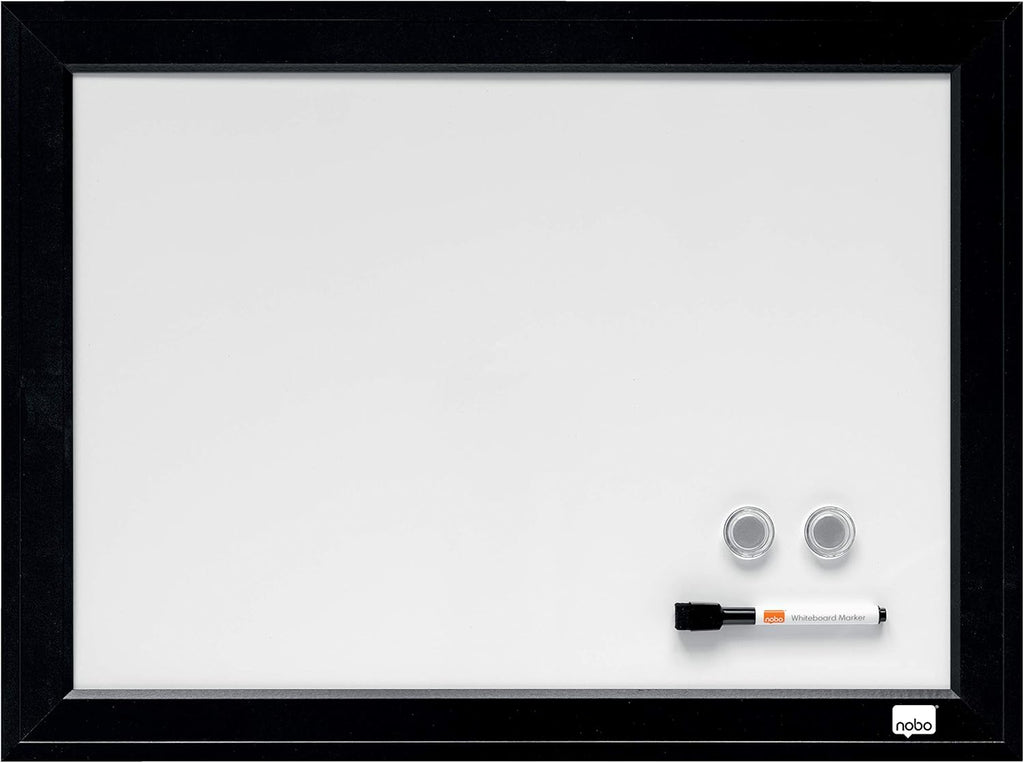 The Nobo Quartet Magnetic Drywipe Board combines a compact writing surface with a stylish black frame, making it ideal for offices, home workspaces, and shared areas. The magnetic drywipe surface supports smooth writing and easy erasing while allowing notes and reminders to be displayed using magnets. Its contemporary design delivers practical everyday performance with a professional finish.