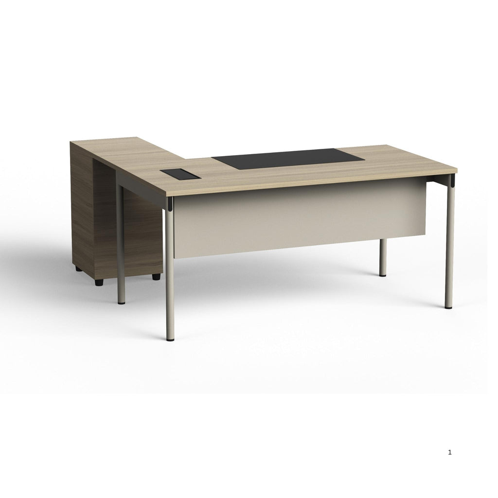 The PG-AN16 Manager’s Desk delivers a sleek blend of sophistication and practicality. Designed with a contemporary L-shaped layout, it offers ample workspace for productivity while maintaining an executive aesthetic. The integrated side cabinet with a drawer and door provides convenient storage for documents, devices, and daily essentials, making it ideal for modern office settings.