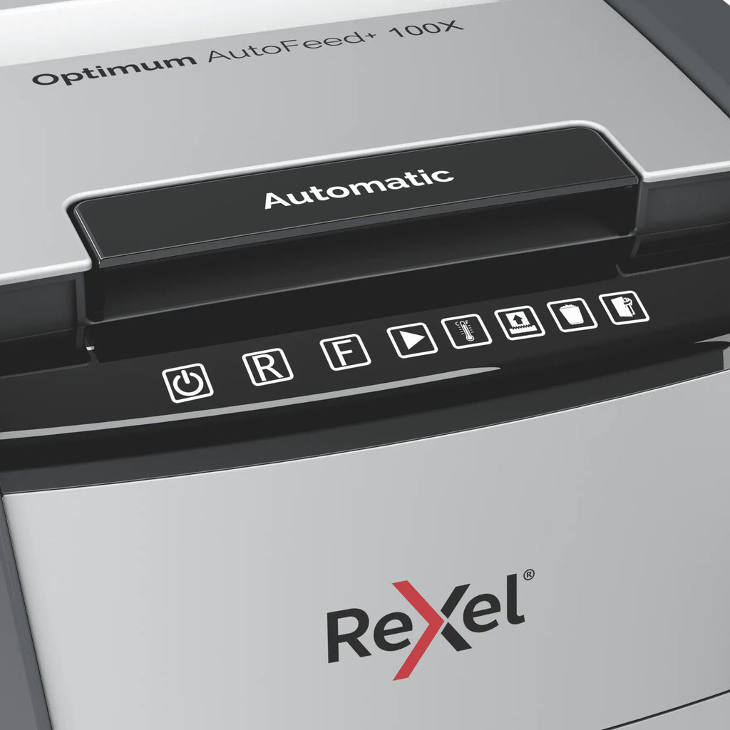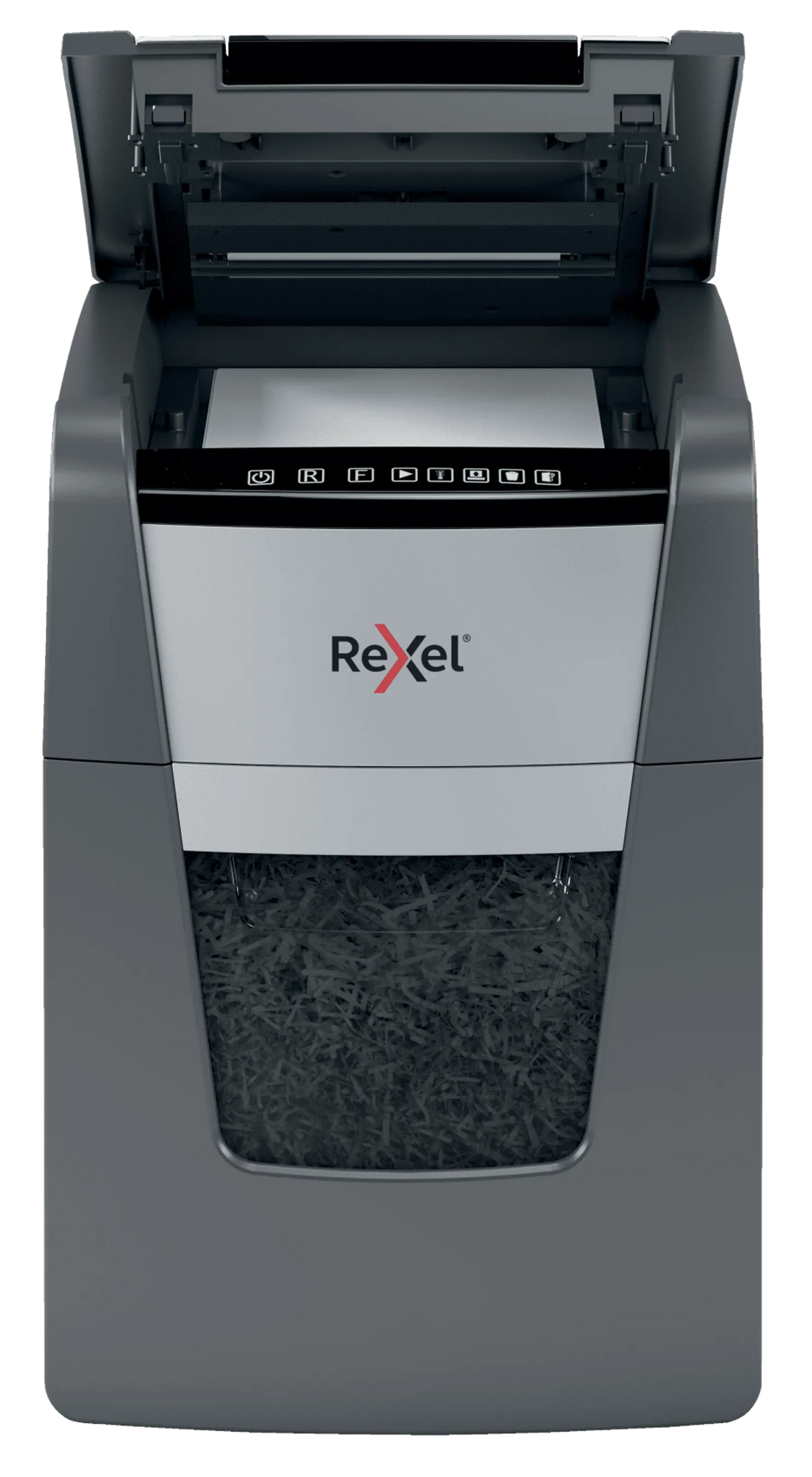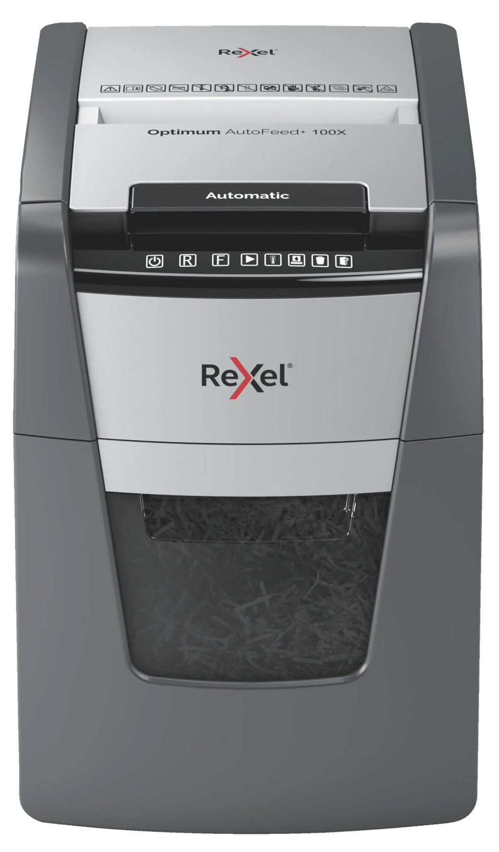 The Optimum AutoFeed+ 100X cross cut shredder automatically shreds up to 100x A4 sheets of paper (80gsm) at a time, into P-4 (4x28mm) cross cut pieces. This auto feed shredder machine is a sophisticated office shredder, featuring a 34L pull out bin. No need to manually feed paper, or remove staples and paper clips first, this automatic paper shredder will do all the work for you.
