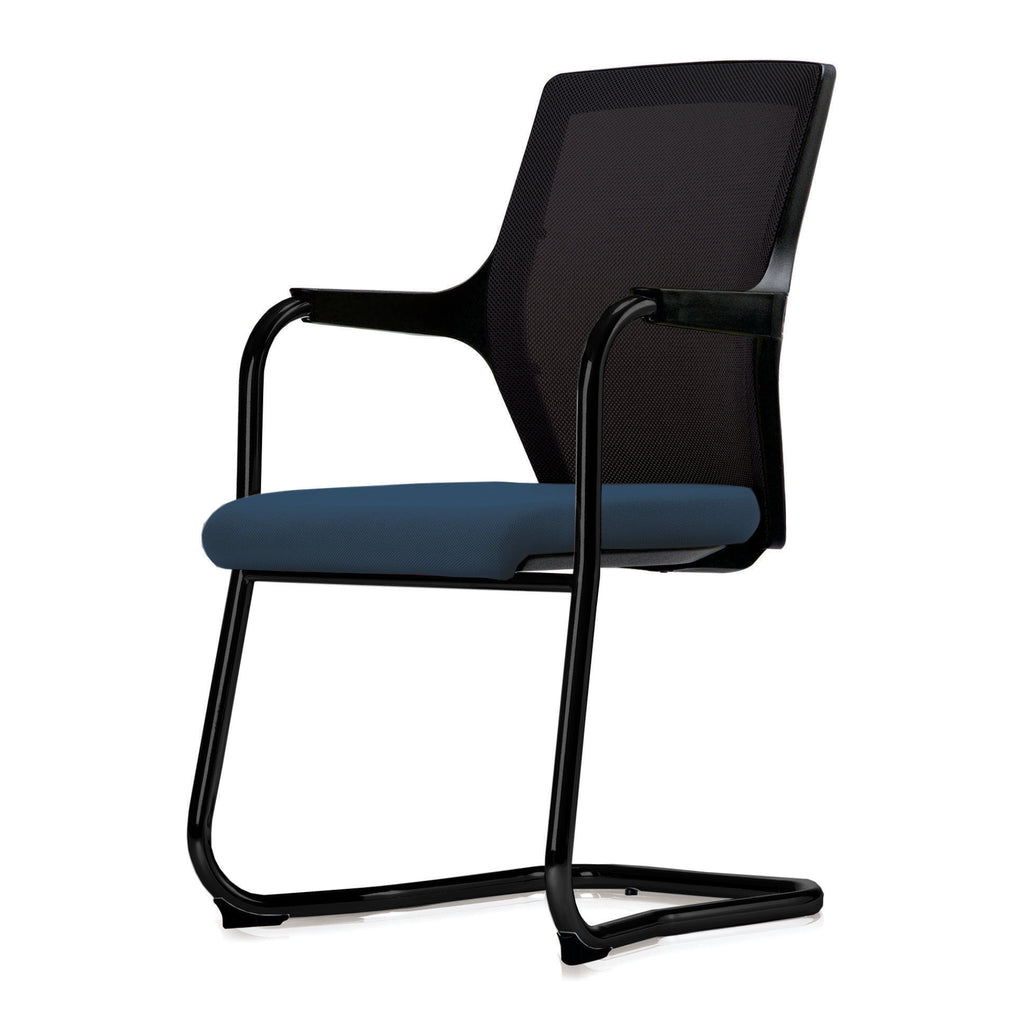 The Robin Visitor Chair blends modern styling with reliable comfort for professional spaces. Its breathable mesh backrest encourages airflow, while the cushioned fabric seat provides comfortable support for visitors during meetings or waiting periods. The sleek black cantilever frame adds a contemporary, minimal look that fits seamlessly into corporate environments.