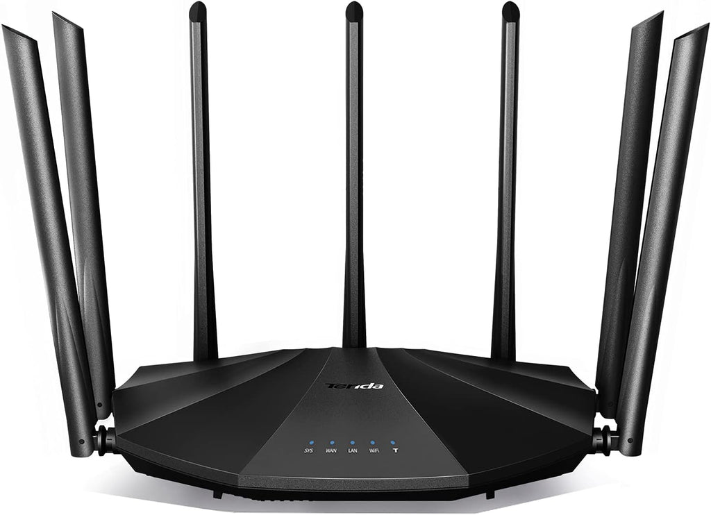 The Tenda AC23 AC2100 Dual-Band Gigabit Wi-Fi Router delivers exceptional wireless performance for homes and small offices with high-speed internet connections. Supporting speeds of up to 2033Mbps with 802.11ac Wave 2 technology, it ensures smooth 4K streaming, online gaming, and simultaneous multi-device usage. Equipped with seven powerful 6dBi external antennas and built-in signal amplifiers, the AC23 provides strong, stable, and far-reaching Wi-Fi coverage across large areas. With support for IPv6 and 4x4 MU-MIMO technology, it delivers optimized performance, reduced latency, and superior efficiency for all your connected devices.