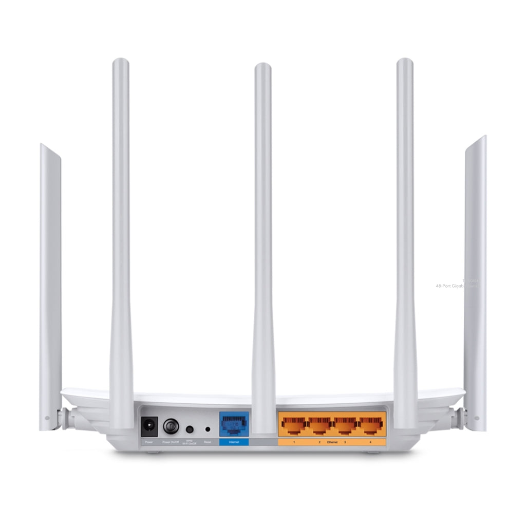 The TP-Link Archer C60 is an AC1350 dual-band Wi-Fi router designed to provide faster wireless speeds and superior coverage. Offering up to 450 Mbps on the 2.4 GHz band and 867 Mbps on the 5 GHz band, it ensures smooth streaming, gaming, and browsing across all your devices. With three 2.4 GHz antennas and two 5 GHz antennas, coverage is enhanced for strong, stable connections throughout your home. Beamforming technology (from Version 2.0 and above) delivers targeted connections for greater efficiency, while advanced features such as Parental Controls and Guest Network give you control and security. The Tether app makes setup and management quick and easy.