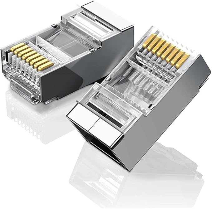 The UGREEN RJ45 Cat6 Shield Connector Plug set provides a reliable and durable solution for Ethernet cable terminations. Designed with 8P8C contacts, these connectors are compatible with Cat6, Cat5e, and Cat5 cables, supporting 8-wire connections. Featuring 50-micron gold-plated contacts, they deliver optimal conductivity, corrosion resistance, and stable long-term performance. The metal shielded casing ensures protection against electromagnetic interference (EMI), enhancing signal strength and transmission stability for both professional and home networking setups.